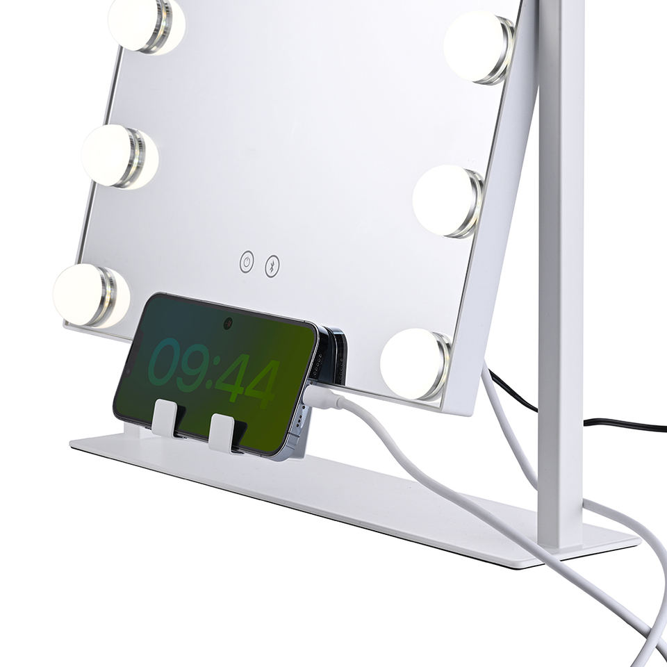 Specchio da Trucco LED da Tavolo di Design con Bluetooth e Supporto per Telefono, Specchio con Vano Portaoggetti per Riparazioni e Trucco