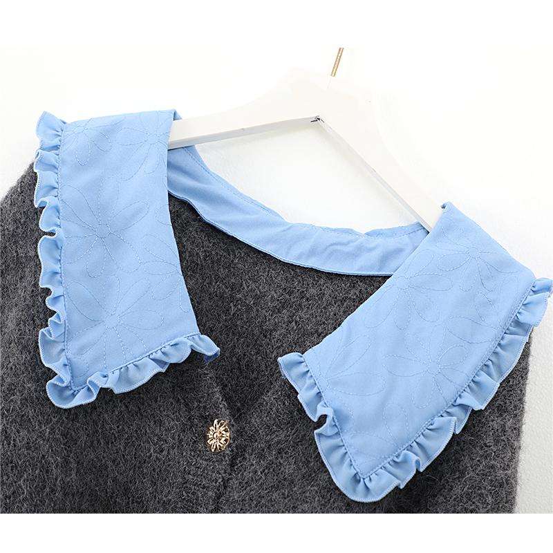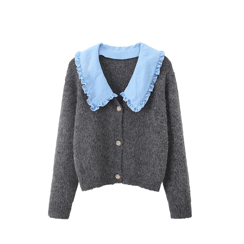 Nome del prodotto:Maglione a maniche lunghe in pizzo con risvolto in lana lavorato a maglia cardigan donna
