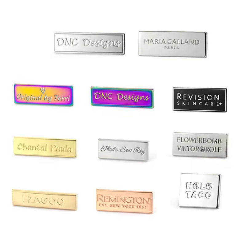 Design Small Clothes 3D Logo Silver Gold Branded Emblem Stainless Steel Engrave Nameplate Pin Custom Metal Name Plate