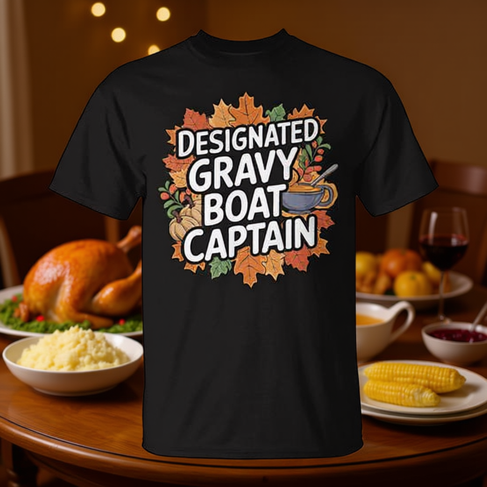 T-shirt Designated Gravy Boat Captain per il Giorno del Ringraziamento, in cotone premium, vestibilità unisex