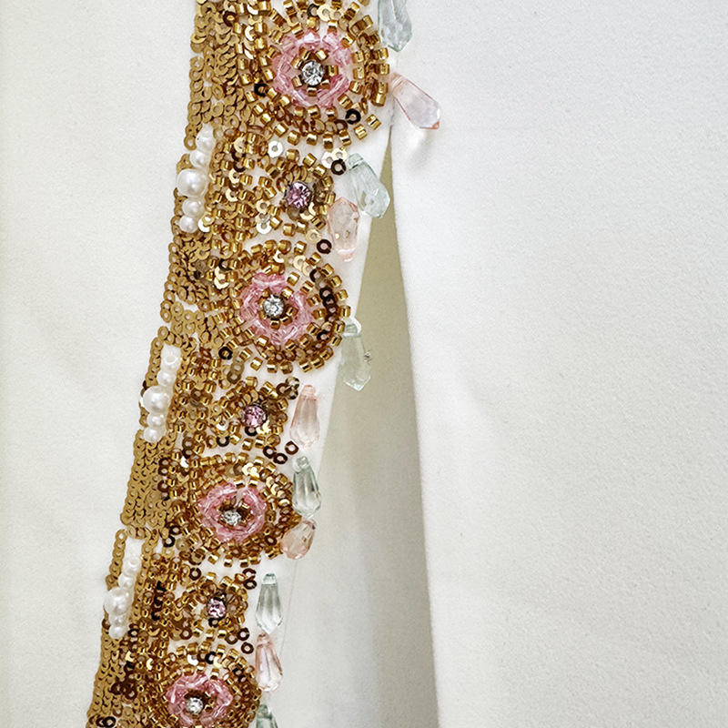 Abbigliamento firmato bianco collo alto manica lunga oro floreale due pezzi Maxi gonna Set produttori per abiti personalizzati
