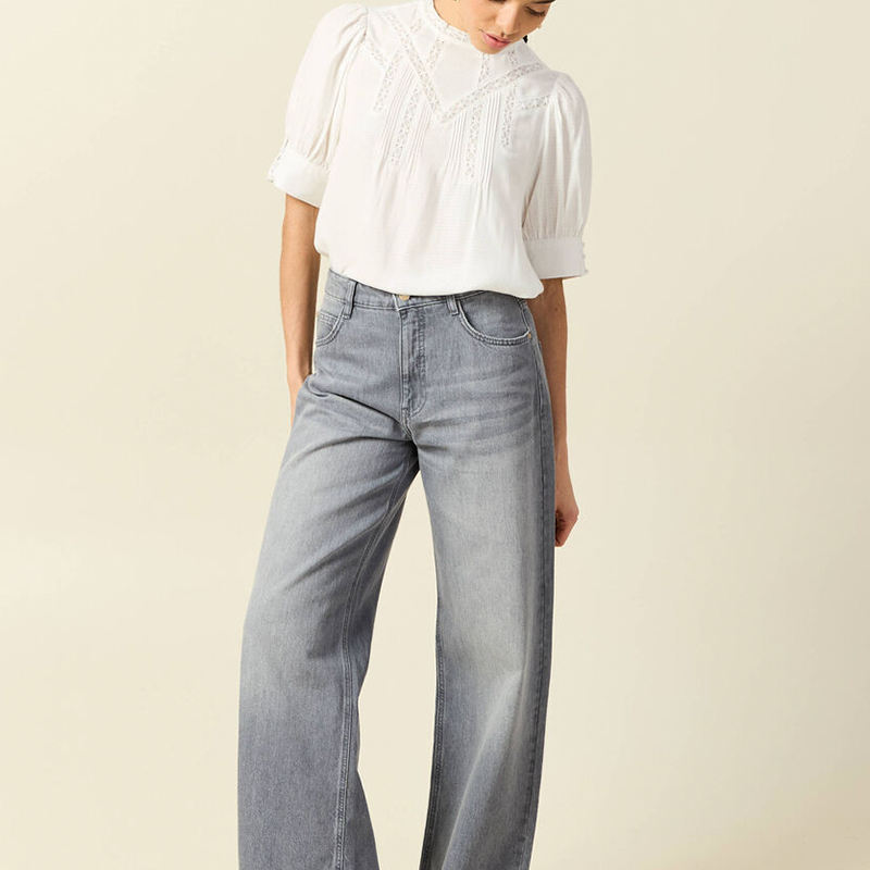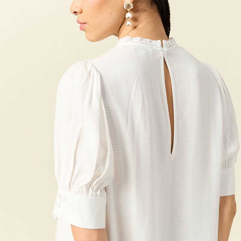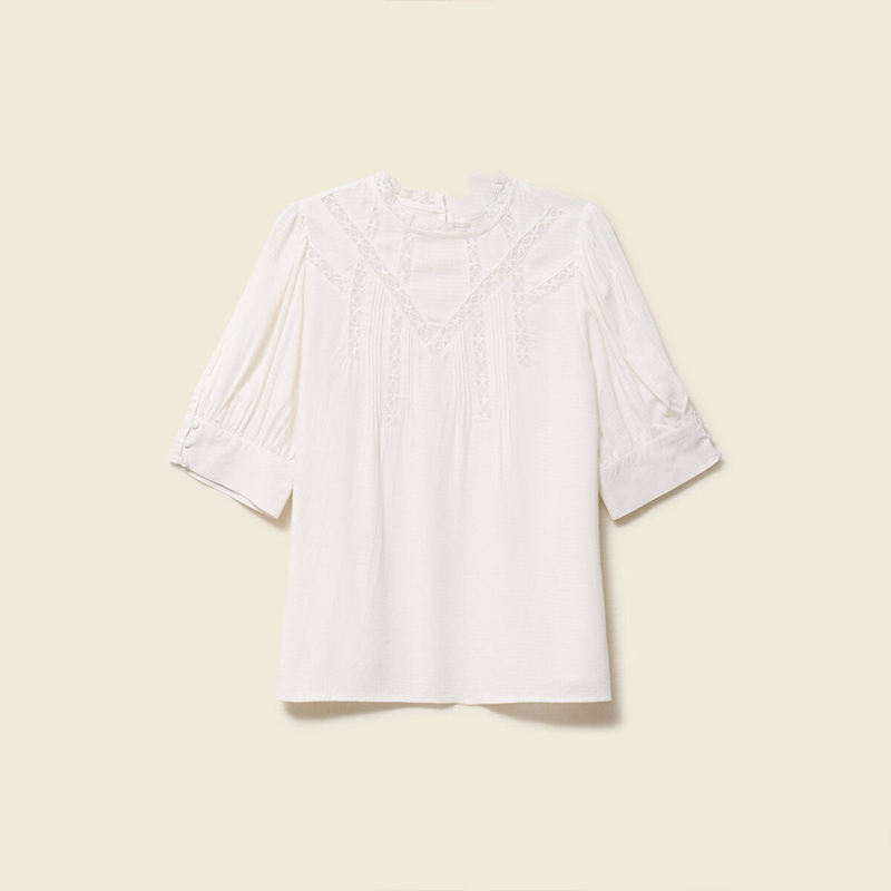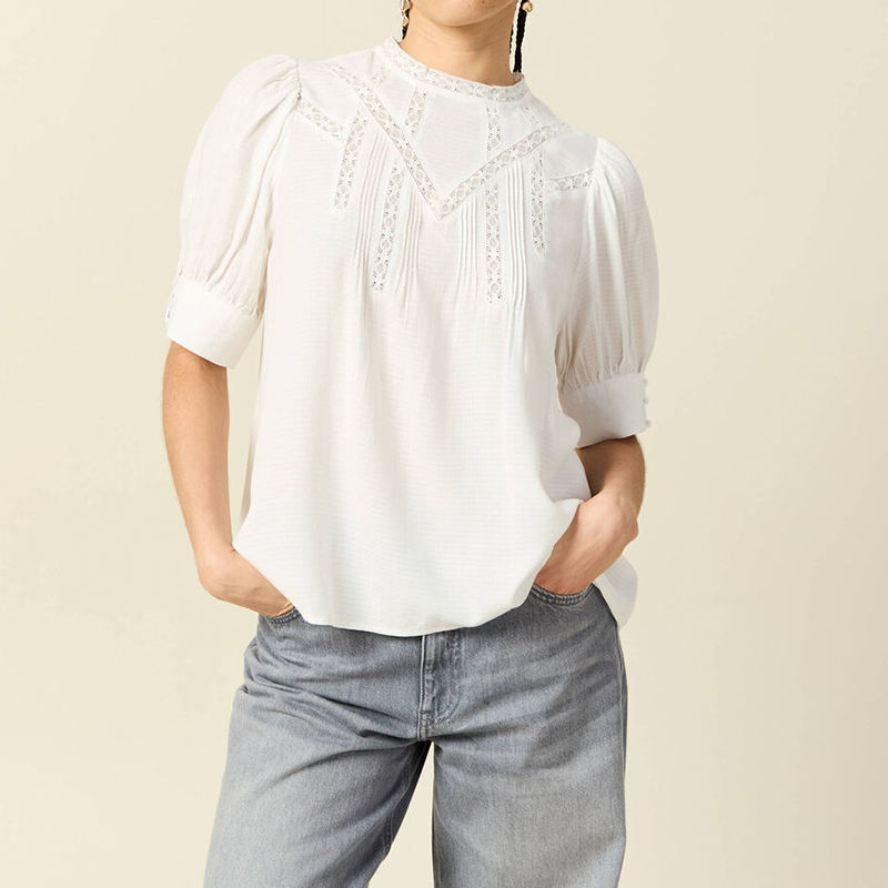 Camicette Crop Top di Design per Donne, Moda Primaverile, Bianco e Nero, Tulle e Pizzo, Maniche a Campana, Camicette Sexy