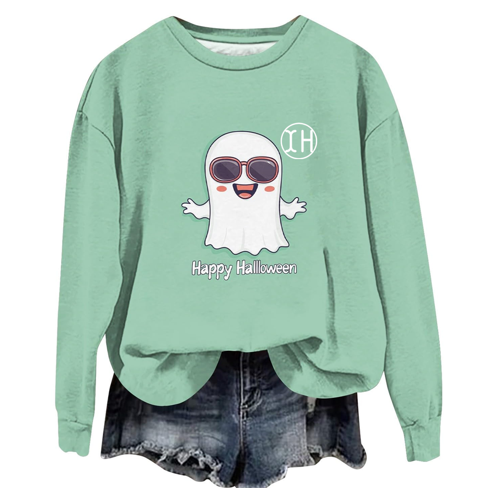 Felpa firmata Happy Halloween spettrale con stampa fantasma ampia e accogliente girocollo felpe di spugna francese da donna