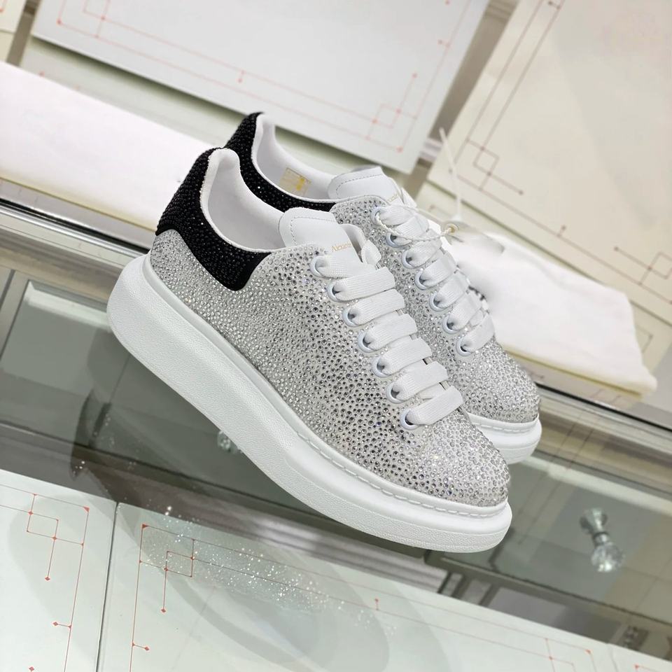 Scarpe Casual di Alta Gamma Alexander McQueen Originali con Perline e Cristalli MQ Logo Personalizzato Bianche in Rete Moda Trendy Piatte