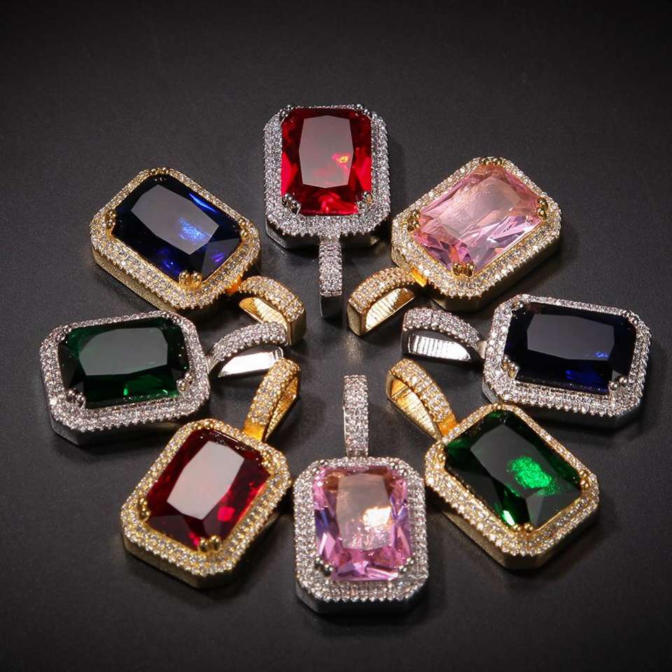 Collana da Uomo con Ciondolo Quadrato in Cristallo CZ Multicolore, Stile Hip-Hop di Design