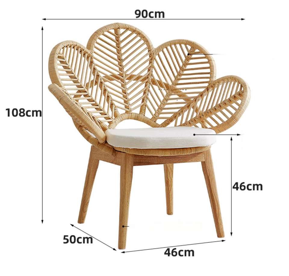 Designer ultimo stile moderno gambe in legno salotto fiore schienale in Rattan tessitura tempo libero in Rattan mobili Vintage sedia da pranzo