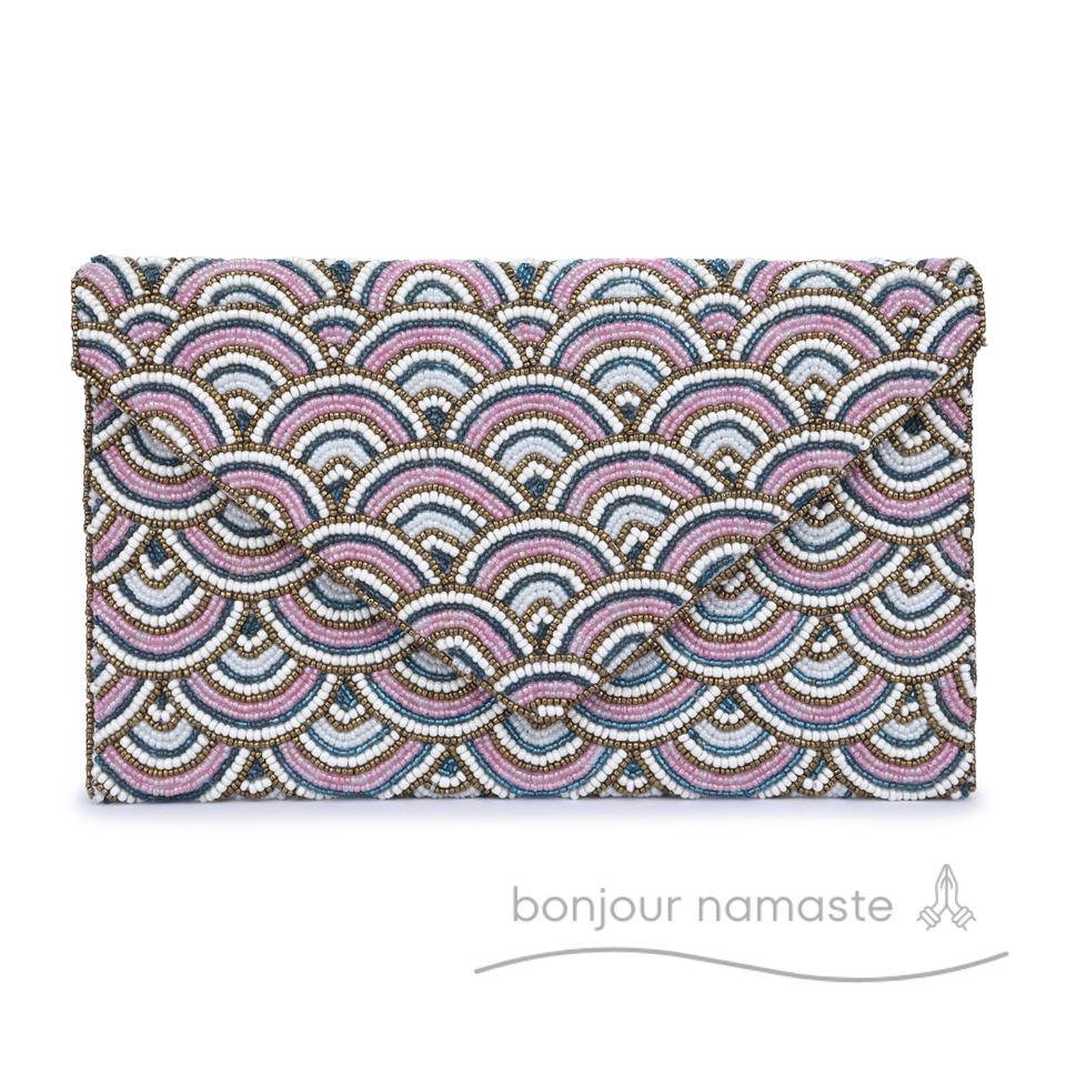 Designer Luxury Women's Open Saddle Purse with Elegant Beaded Embroidery Bonjour Namaste Brand All Seasons Evening & Travel Use