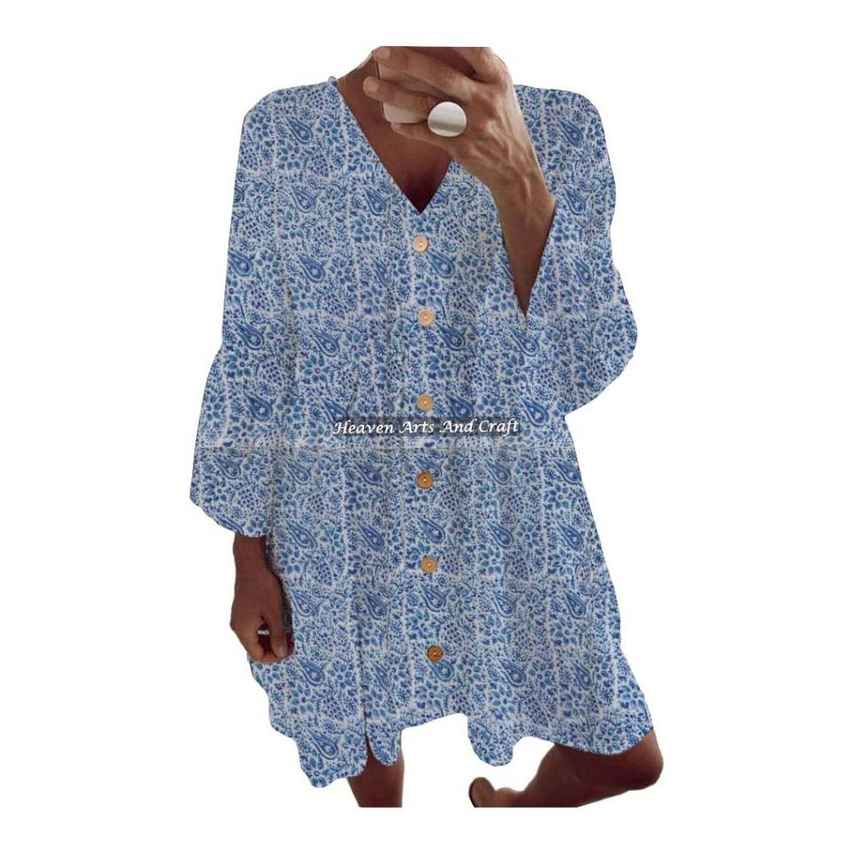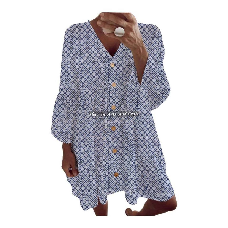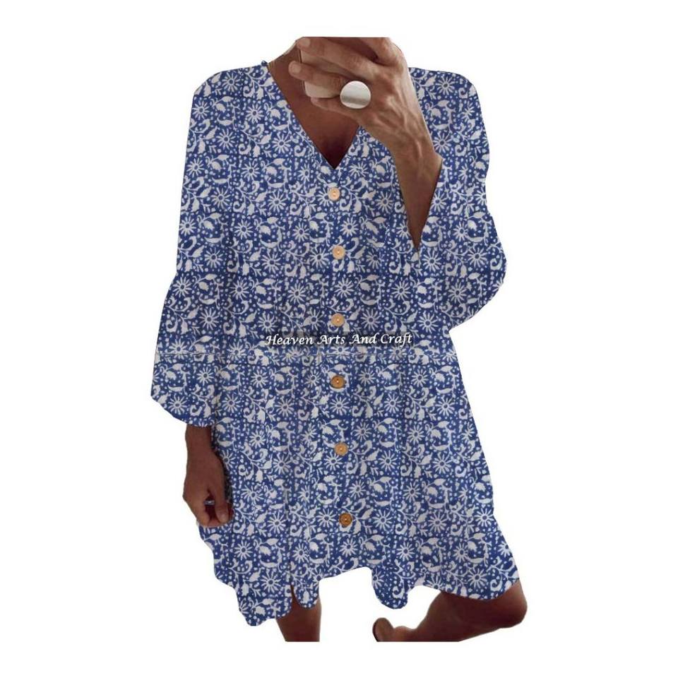 Designer Women Indian Ethnic Cotton Hand Block Print Summer Spring Summer Dress Sweet Style Top For Beach Perfect Gift For Her