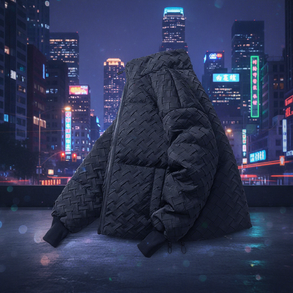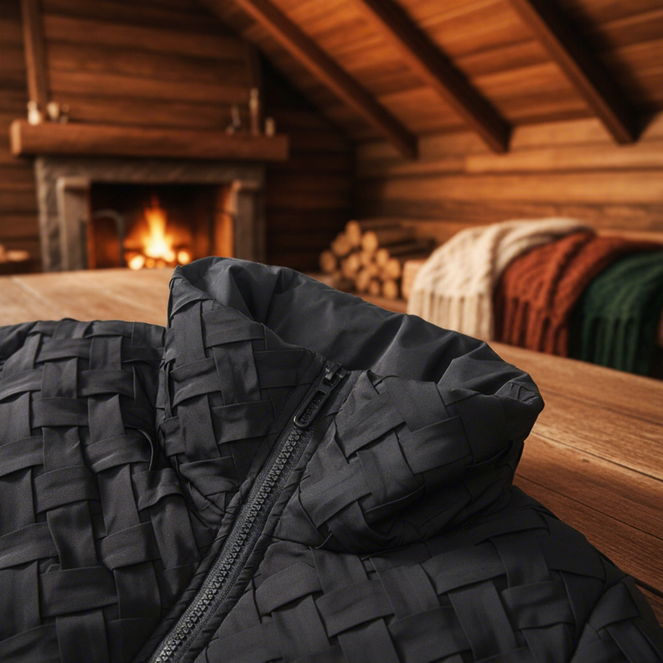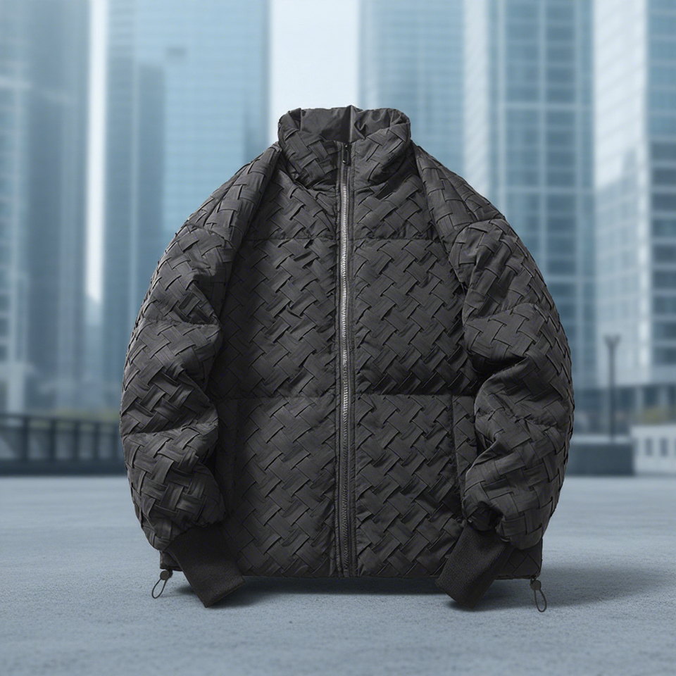 Progettazione di una Giacca Imbottita Grande e Calda con Collo Alto in Poliestere