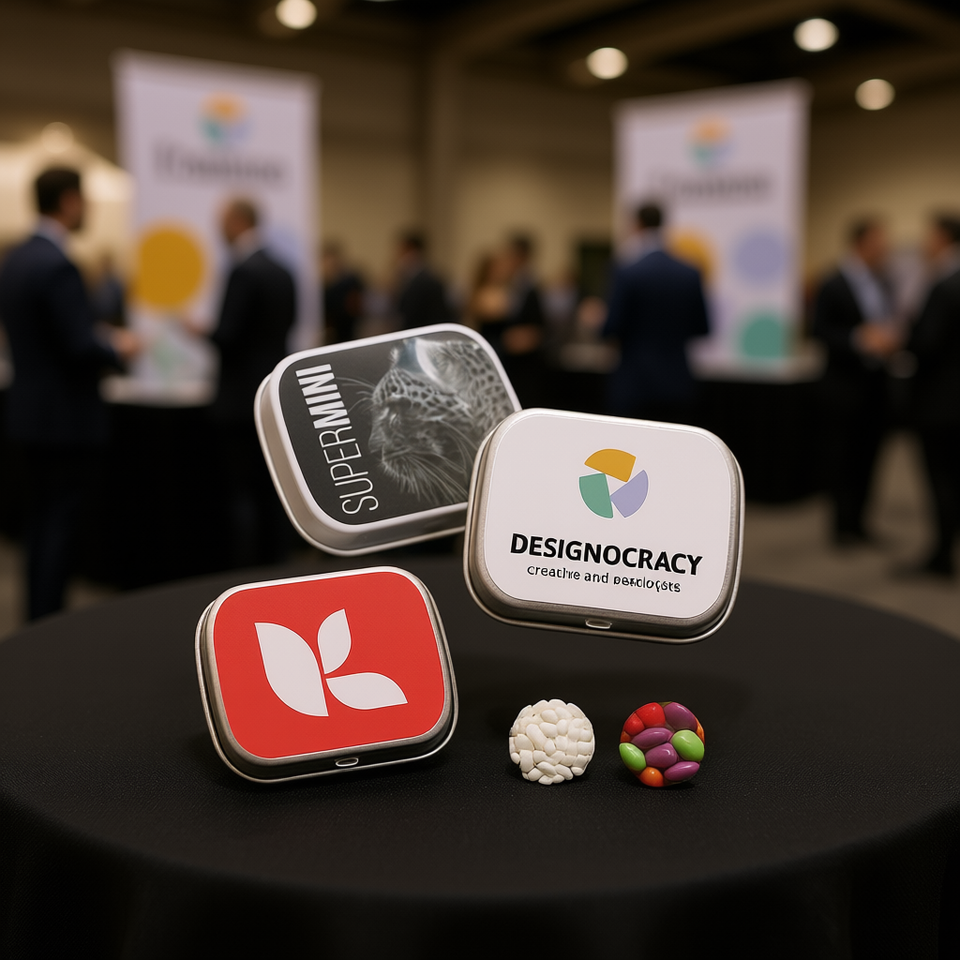 Designocracy Metal Candy Tin 10 Pack Promotional Gift With Logo Customizable For Events And Branding
