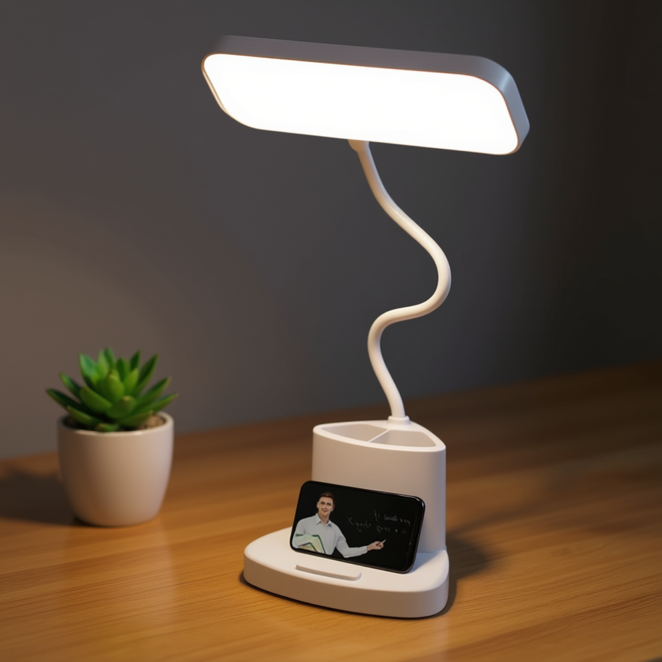 Adjustable Desk Lamp With USB Charging Port, Touch Control LED Light, 5000K Daylight, Minimalist Design, Plastic Body, 25000-Hou