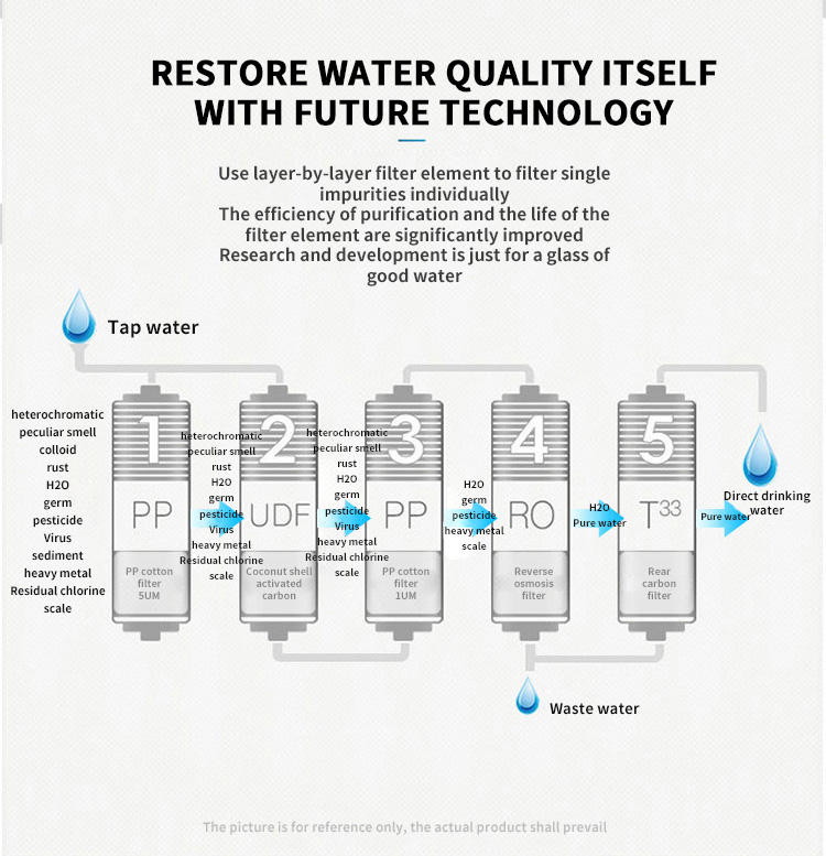 Desktop 5 stage ro system filtri per acqua potabile depuratore refrigeratore d'acqua distributore di acqua calda e fredda a parete con fabbricatore di ghiaccio