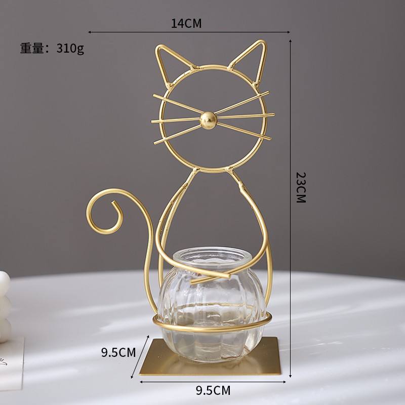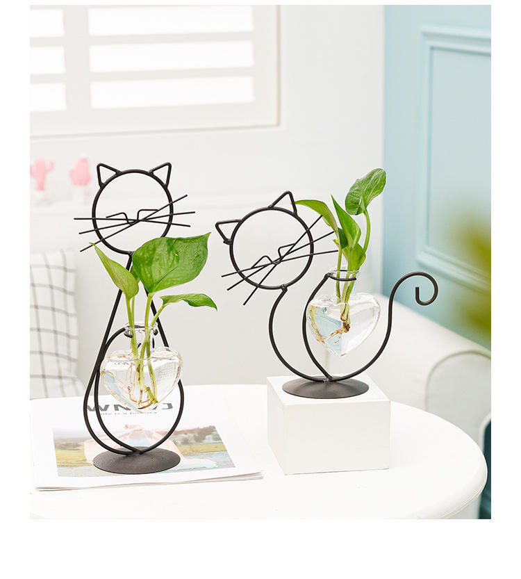 Desktop Glass Planter Vase Holder Modern Creative Cat Plant Terrarium Metal Stand for Hydroponics Plants Home Wedding Decor