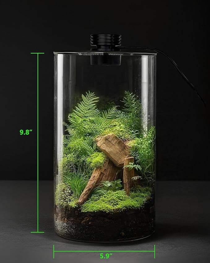 Terrario da Tavolo in Vetro con Luce per Coltivazione, 25 cm (9.8 pollici) H, per Piante, Succulente, Muschio, Mini Giardini, Acquari per Pesci Betta, Coltivazione Funghi