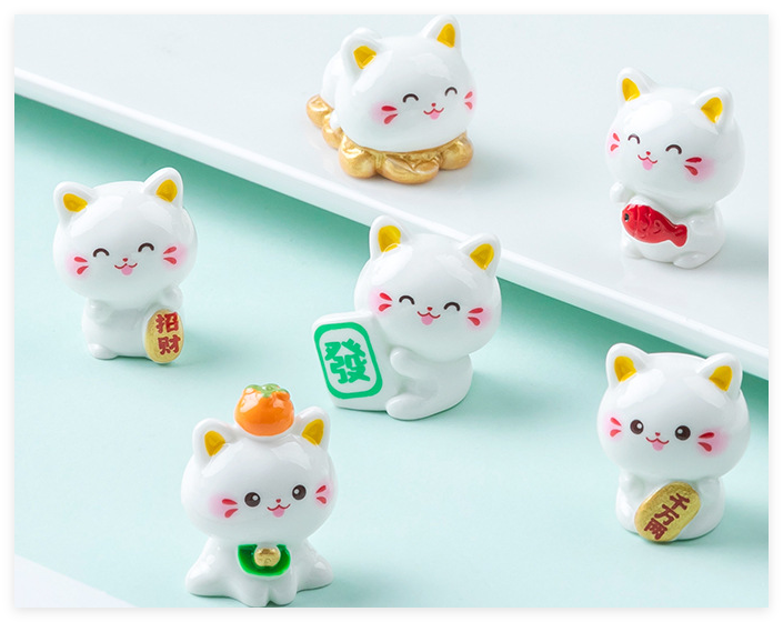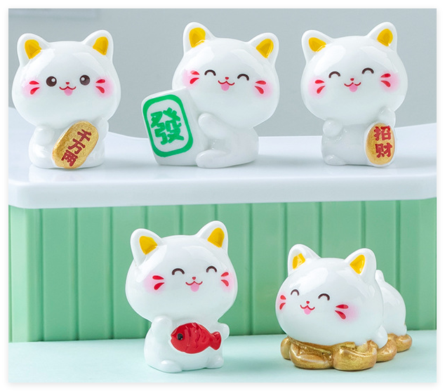 Desktop Ornaments Miniature Animals Chinese Dolls Resin Lucky Cat Gold Fairy Hand-painted Feng Shui Mini Garden Tiny 3D