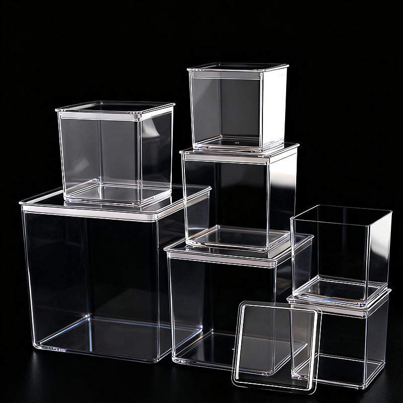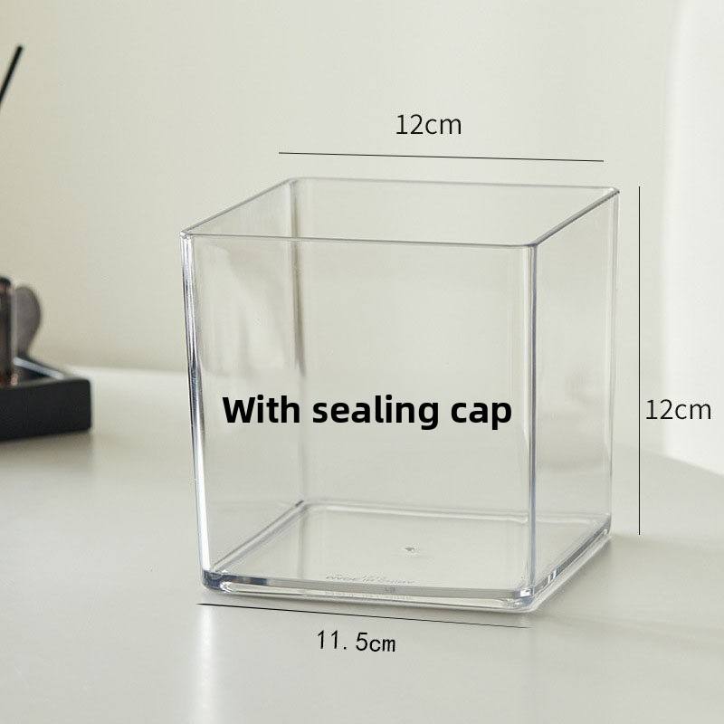 Scatola portaoggetti da scrivania quadrata in acrilico trasparente con coperchio sigillato per cucina, cosmetici, cancelleria, quaderni, adesivi e articoli vari