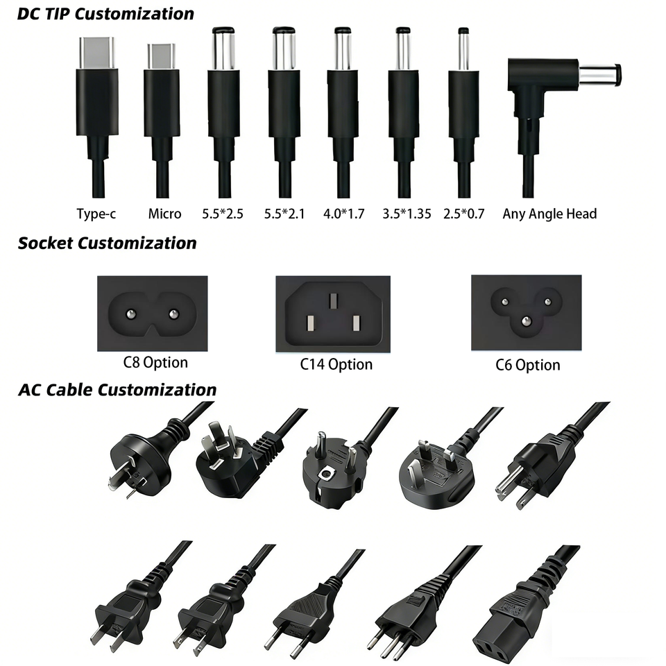 Alimentatore da Tavolo 19V 6.5A 120W, Adattatori di Alimentazione AC/DC 12V 15V 16V 18V 1A 2A 3A 4A 5A 6A 7A 8A 10A