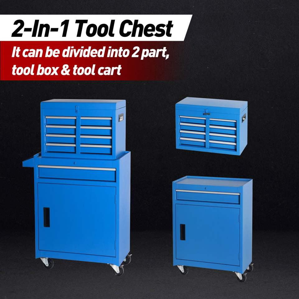 Cassettiera Portautensili Smontabile con 5 Cassetti, Ruote Universali Bloccabili, Ripiani Regolabili e Rivestimento Interno