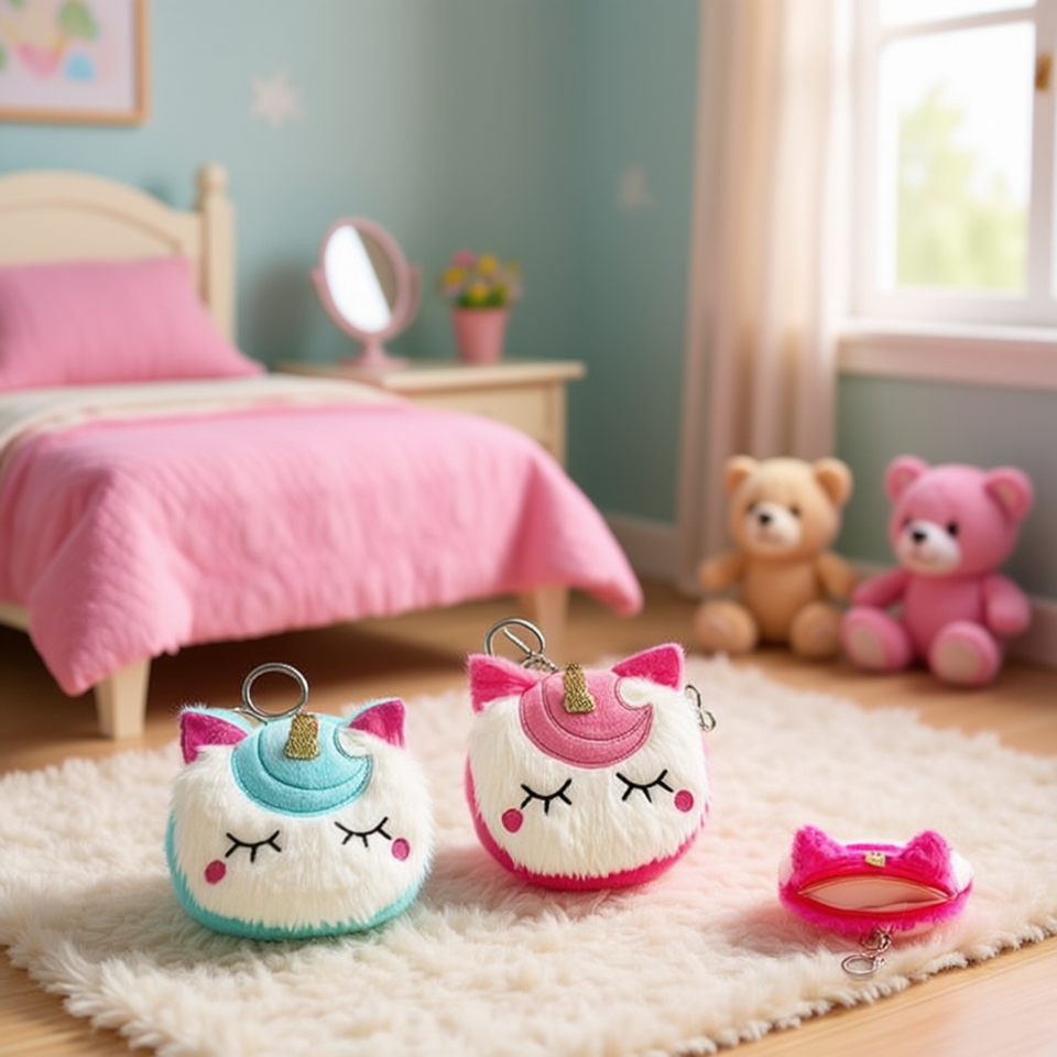 Dewe Unicorn Coin Purse 12x10cm With Mirror Keychain Plush Wallet For Girls