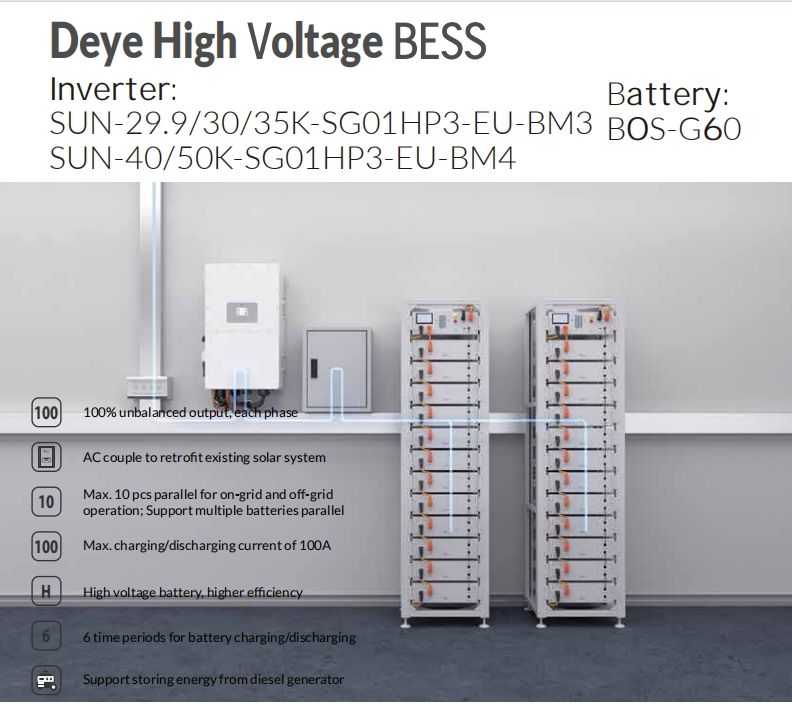 Deye BESS tutto in uno sistema di accumulo di energia batteria al litio BOS-G 60kWh con Inverter solare 20KW 30KW 40KW 50KW ad alta tensione