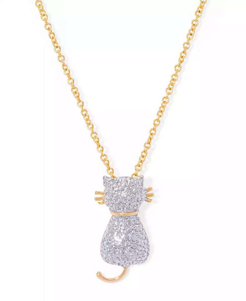 Ciondolo gatto con accento di diamanti collana 18 "in piatto d'oro | Macacy's