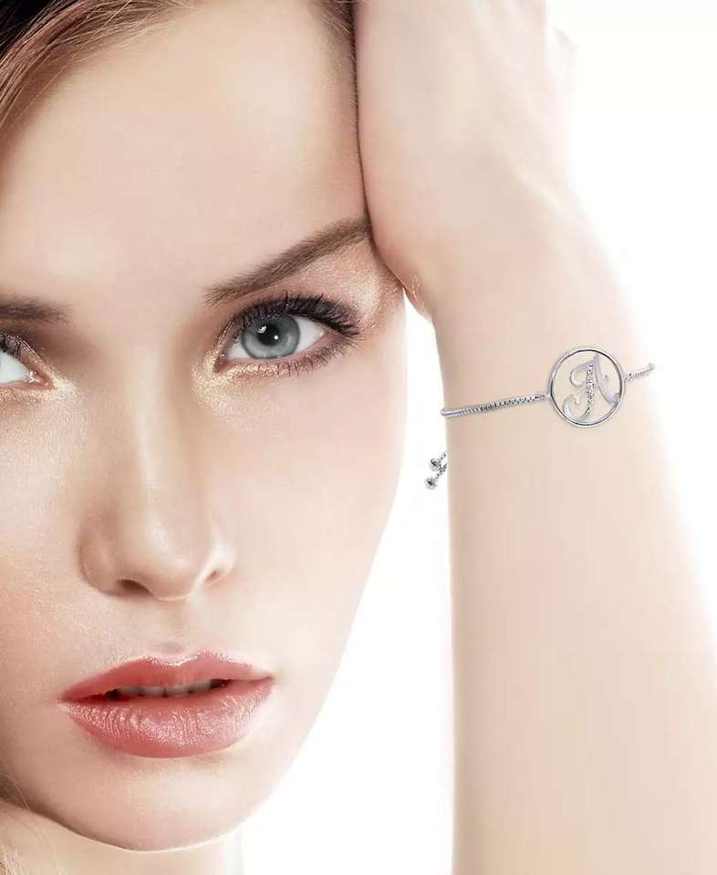 Diamond Accent Initial Bolo Bracelet in Silver-Plate | Macy's