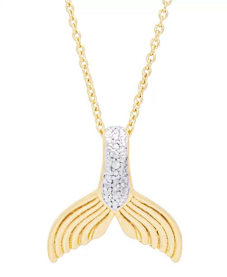 Diamond Accent Mermaid Tail Pendant 18" Necklace in 14K Gold Plate | Macy's