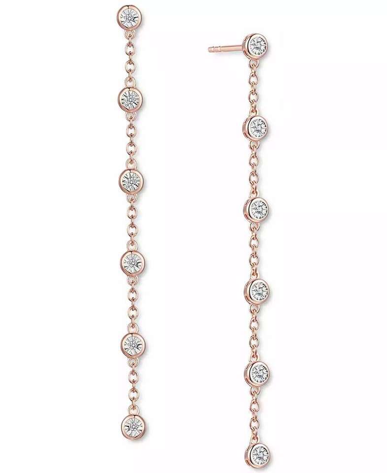 Diamond Bezel Linear Drop Earrings (1/10 ct. t.w.) in Sterling Silver, 14k Gold-Plated Sterling Silver or 14k Rose Gold-Plated S