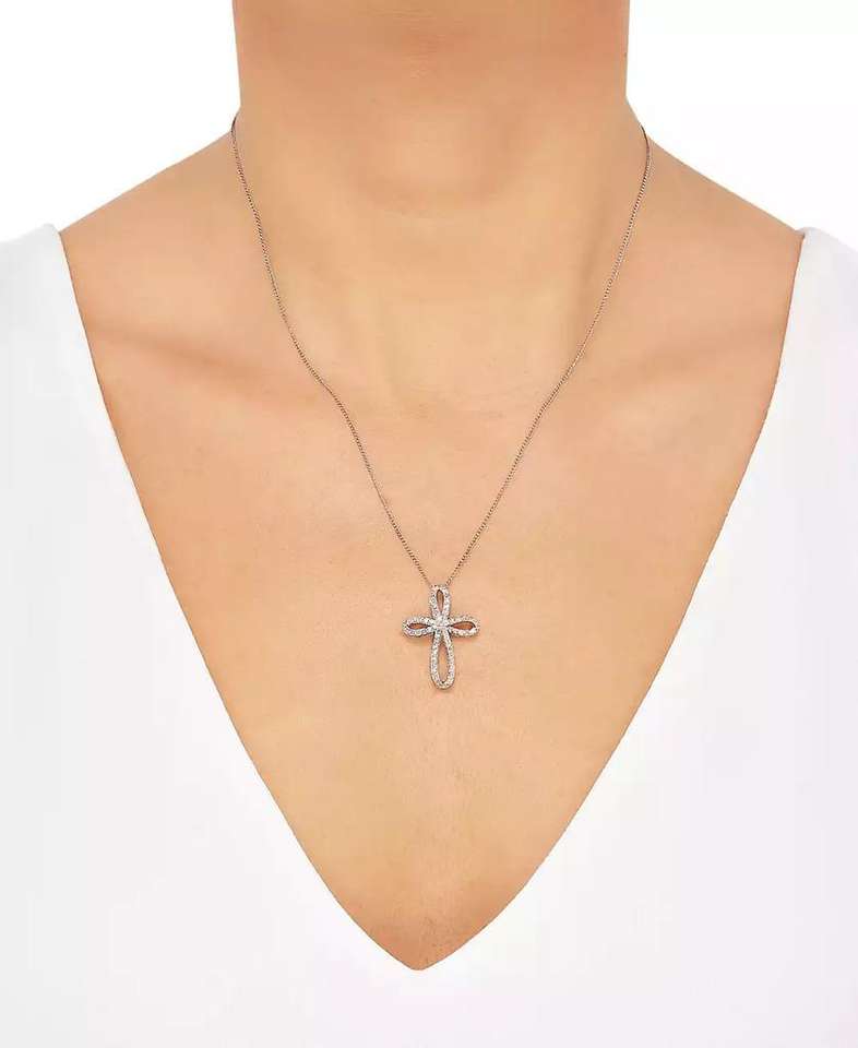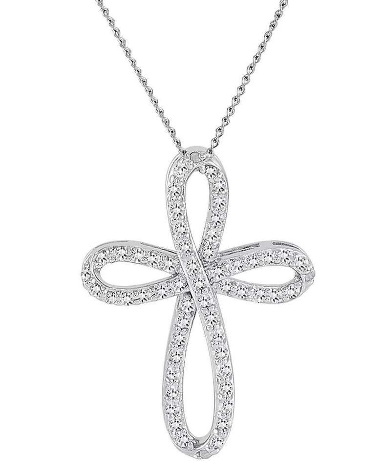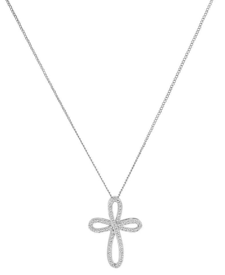 Collana pendente con croce traforata curva a diamante 18 "(1/2 ct. T. w.) in argento Sterling | Macacy's