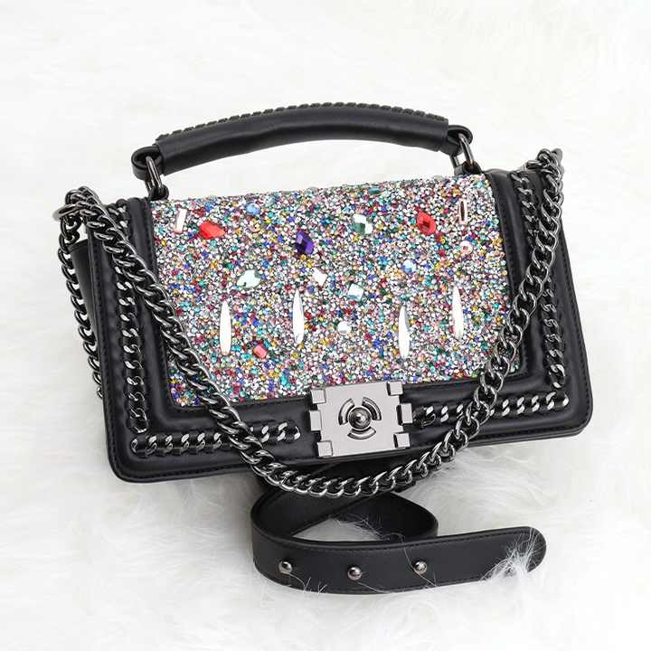 Diamond Embellished Luxury Women's Tote Handbags with Chains Decoration New Design Bling Purses Fashionable Ladies Bags