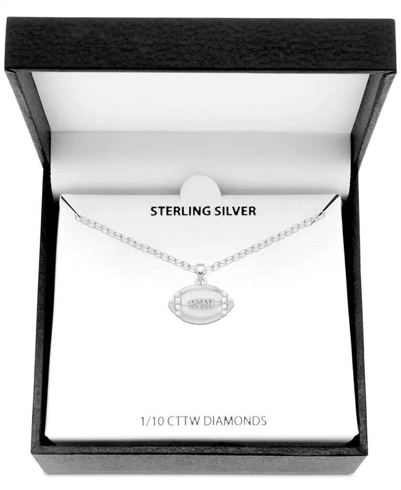 Diamond Football 18" Pendant Necklace (1/10 ct. t.w.) in Sterling Silver | Macy's