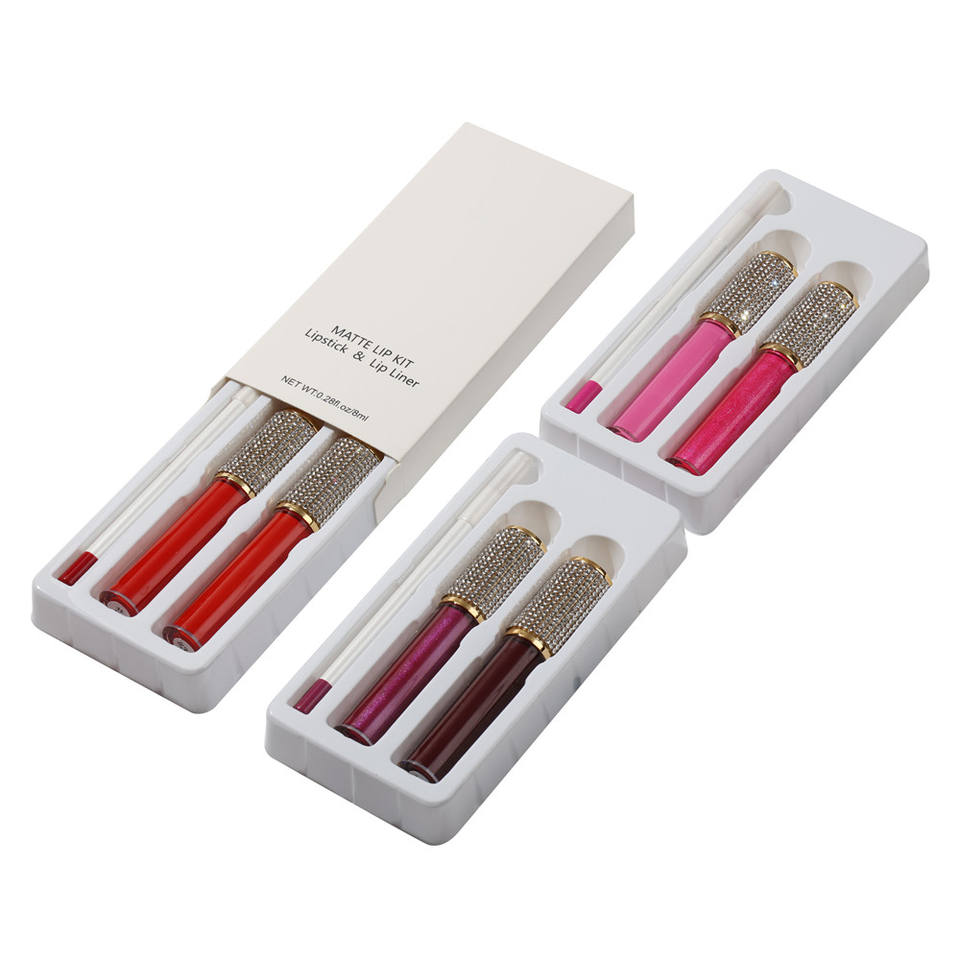 Kit rossetto diamantato Set rossetto liquido opaco impermeabile lucidalabbra e rossetto