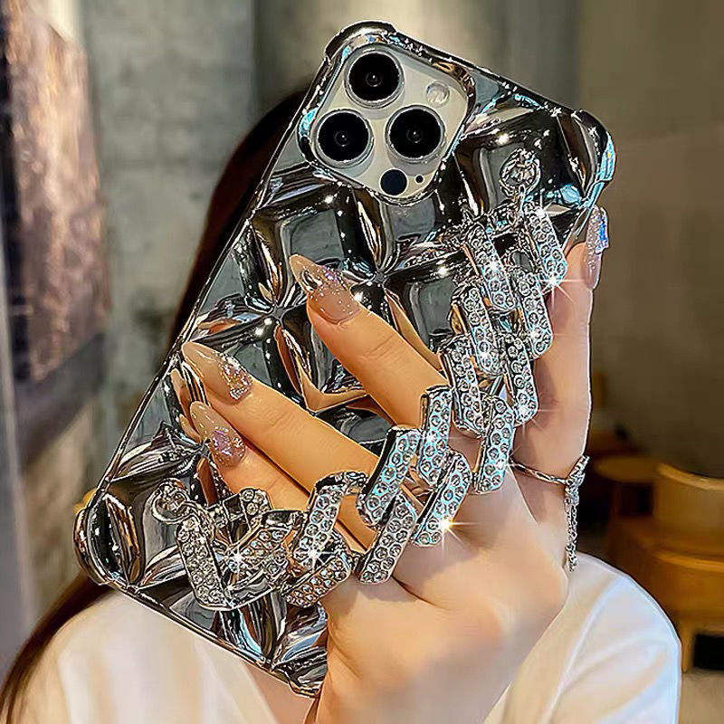 Diamond Luxury Planting with Bracelet Silicone Lens Protection Phone Case Cover for iPhone 17 16 15 14 13 12 11 Pro Max Plus
