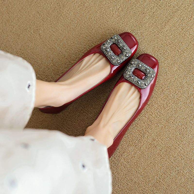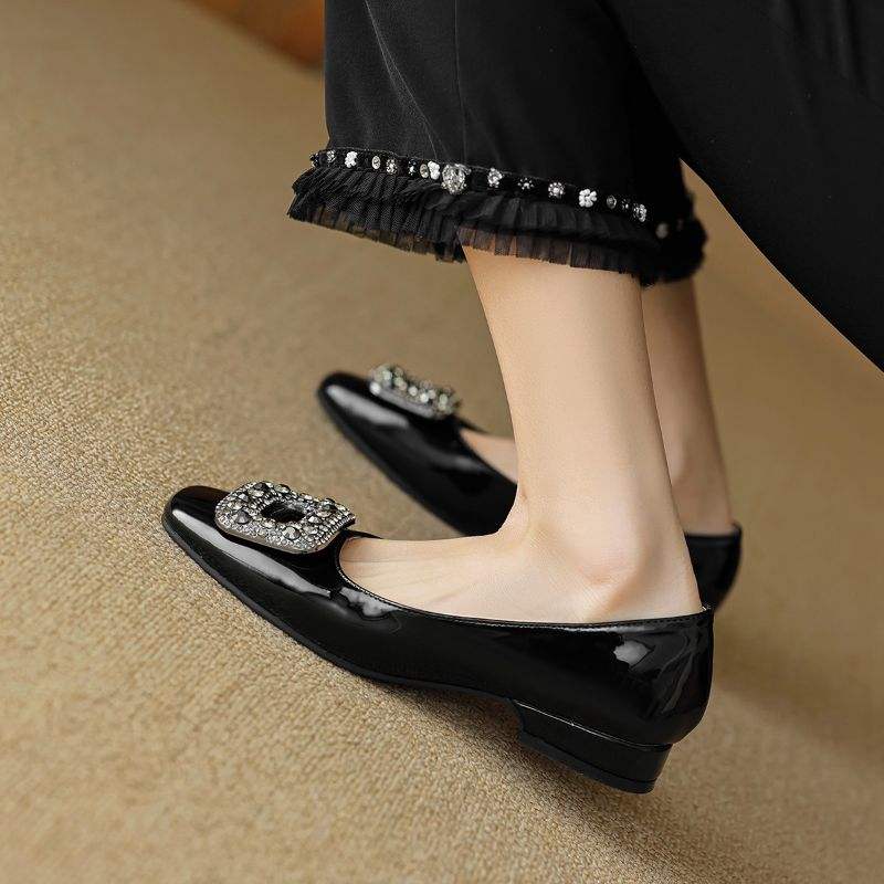 Sandali Casual da Donna con Punta Chiusa e Decorazioni in Diamante, Scarpe Basse Eleganti per Esterni