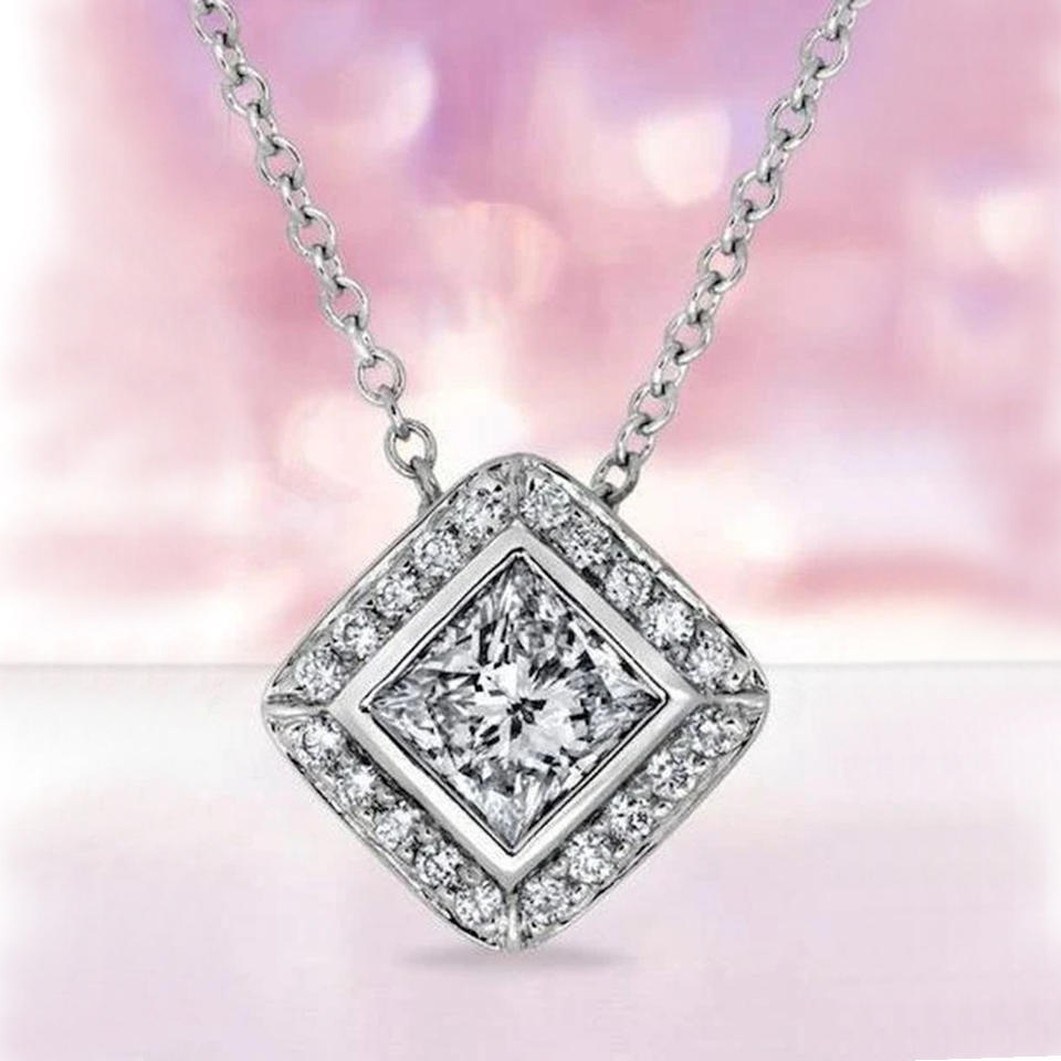 Ciondolo con Diamante Taglio Principessa, Diamante Naturale in Oro Bianco Certificato GIA, Gioiello di Fidanzamento per Donne, Stile Classico