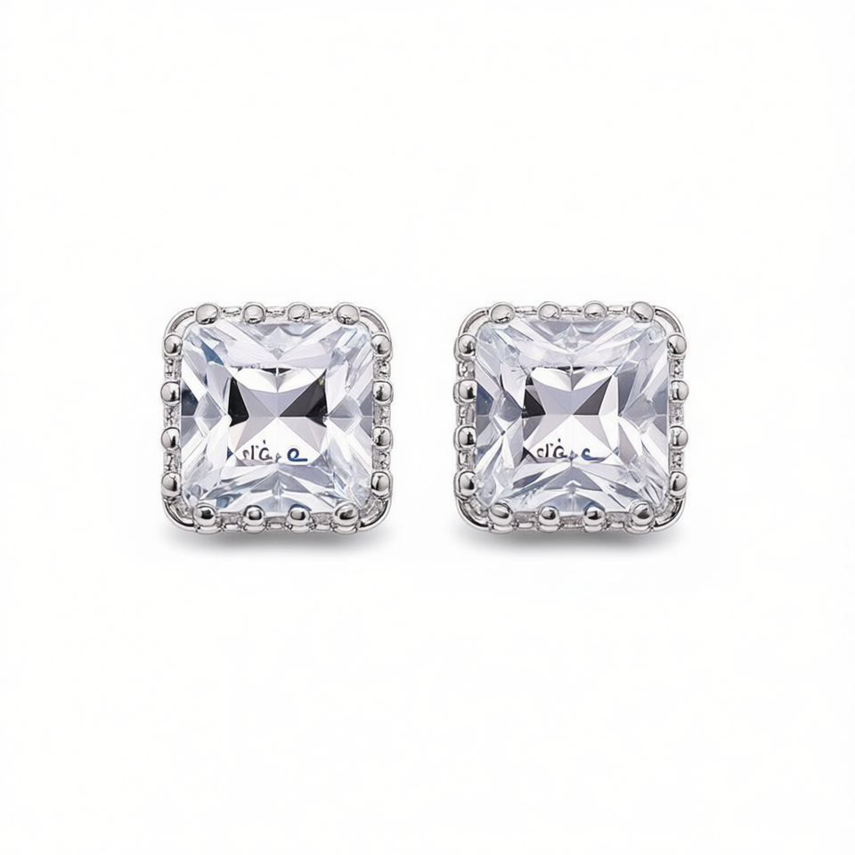Diane Earrings 925 Silver Crystal Stud Geometric Bezel Setting Classic Women's Everyday Wear
