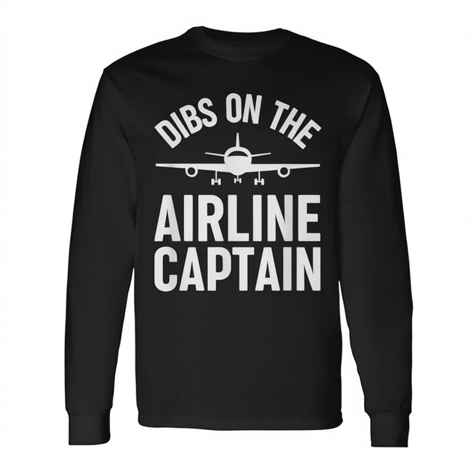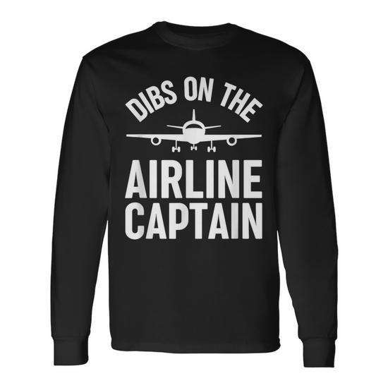 T-shirt a maniche lunghe Dibs On The Airline Captain, girocollo unisex, regalo per la moglie del pilota, bomboniera per matrimonio