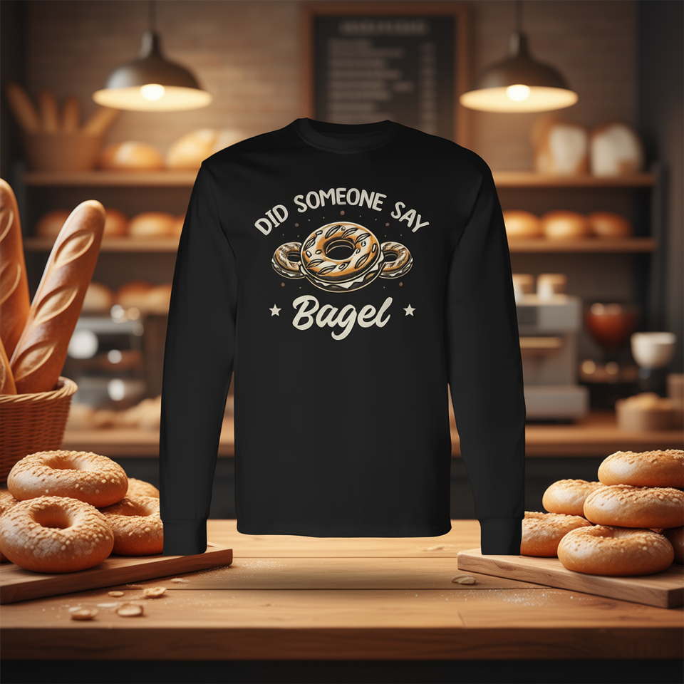 Qualcuno ha detto amante dei bagel? T-shirt a maniche lunghe con divertenti motivi da forno per gli appassionati di bagel