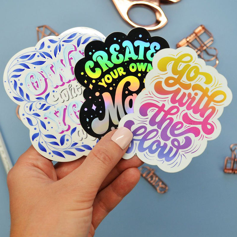 Adesivi Fustellati Personalizzati Anime Olografici Impermeabili in Vinile Glitterato con Stampa Ologramma Logo Etichetta