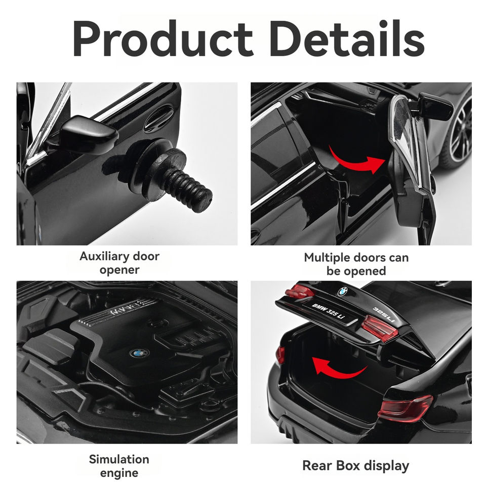 Modellino Auto in Scala 1:24 Ufficialmente Autorizzato BWM 330 325 con Suoni e Luci, Funzione Pull-back, Porte Apribili, Giocattolo da Collezione