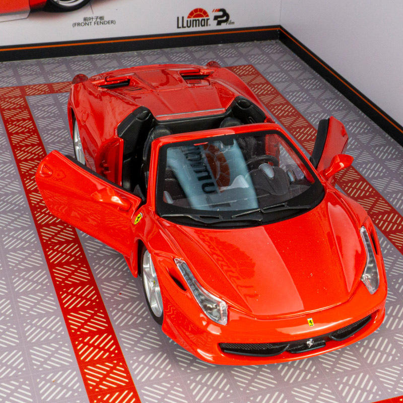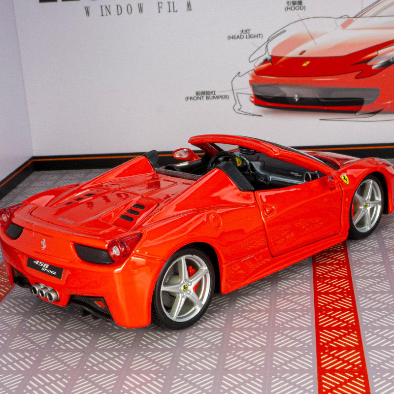Modellini Auto in Scala 1:24 Burago-Ferrari 458 Spider con Suoni e Luci, Supercar Decorativa con Funzione Pullback, Modellino in Fibra