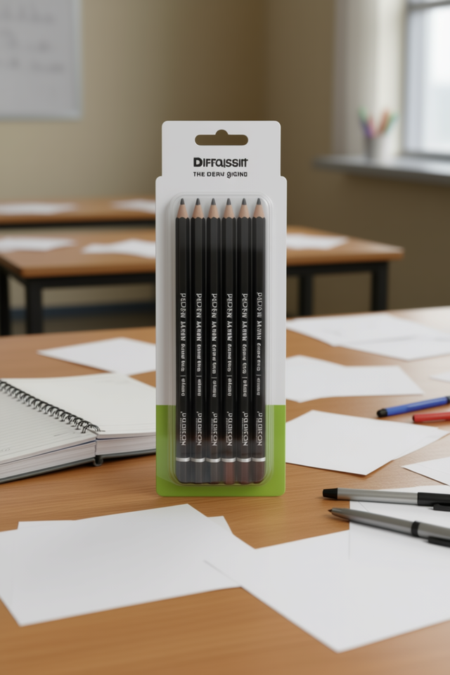 Diffalissit Pencil Set Wood Body Multi Color Black Lead Digital Printing Office School Use