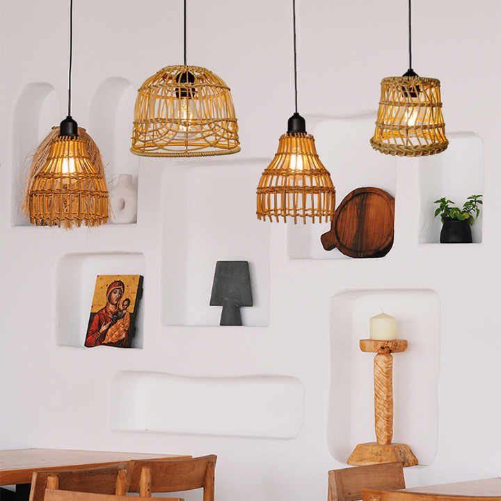 Lampadario decorativo ristorante in Rattan con design a batteria di forma diversa