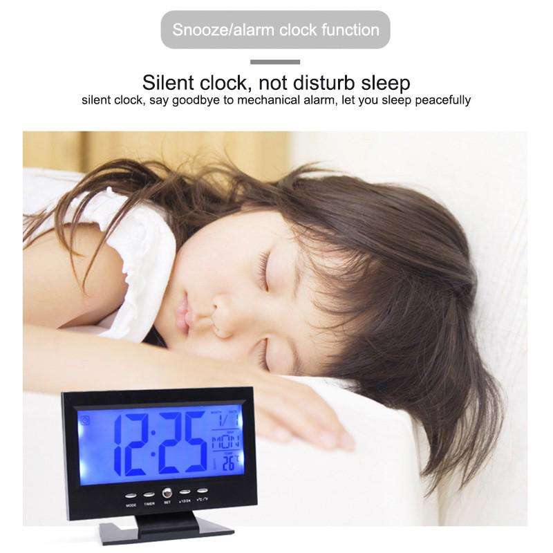 Sveglia Digitale da Scrivania in ABS con Display LCD, Controllo Vocale, Retroilluminazione, Temperatura e Funzione Snooze per Studenti e Bambini