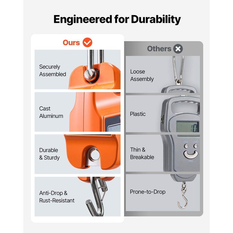 Bilancia Digitale Portatile per Gru, Capacità Massima 400 kg, Struttura in Alluminio Pressofuso con Display LCD, Divisibilità 0,2 kg