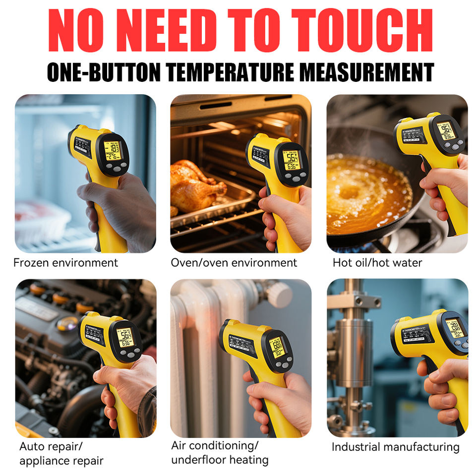 Termometro a Infrarossi Digitale con Laser, Misuratore di Temperatura Senza Contatto con Display LCD, Termometro Elettronico a Batteria