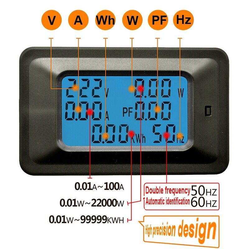 Energia LCD digitale metro WATT monitor volt, ampere, potenza, energia, HZ nel monitoraggio in tempo reale
