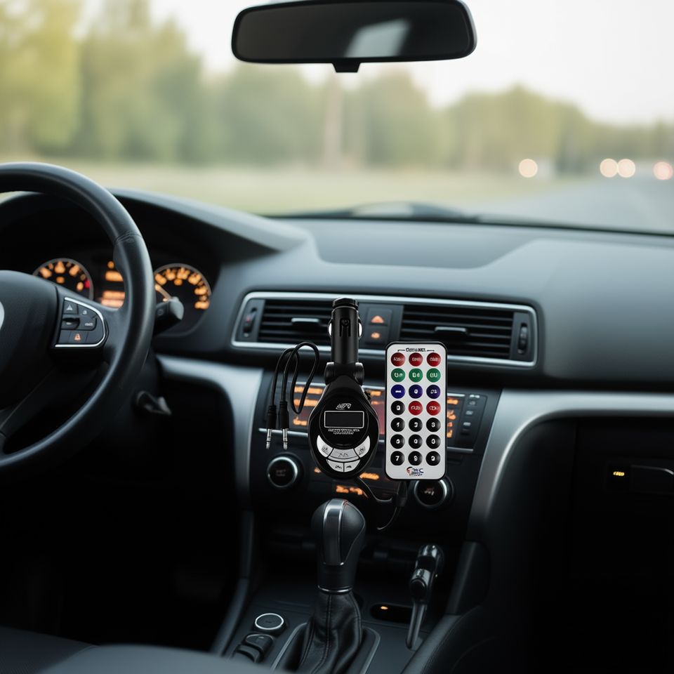 Trasmettitore FM MP3 per auto Young Electronicos MP003 con telecomando e cavo AUX, adattatore audio wireless universale per veicoli