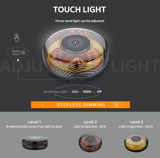 Prodotti digitali indipendenti caricabatteria veloce ricarica Mobile elegante lampada di respirazione senza fili con Touch LED