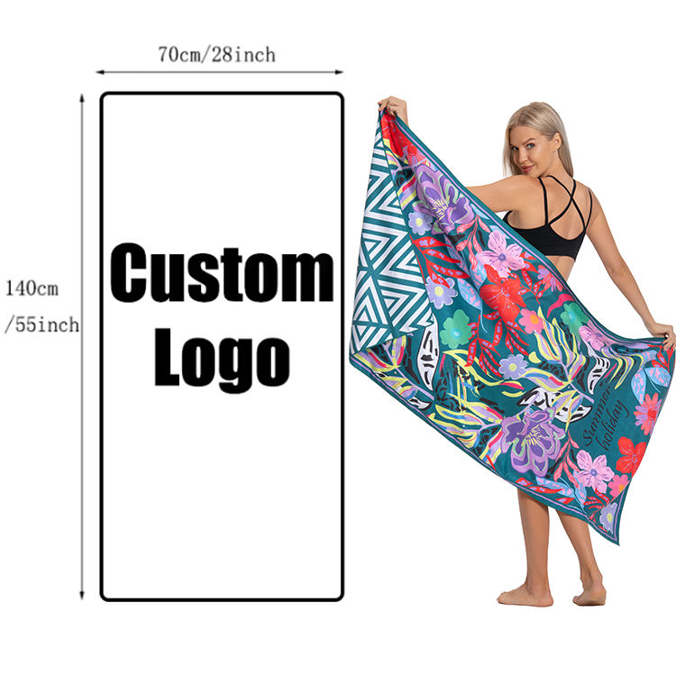 Teli da spiaggia in microfibra stampati personalizzati con Logo fiore con stampa a sublimazione digitale
